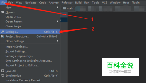 idea菜单栏选中File-->Settings 打开配置界面。