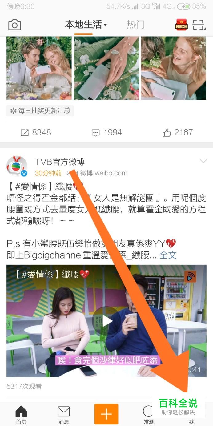 首先点击进入手机新浪微博页面“我”。