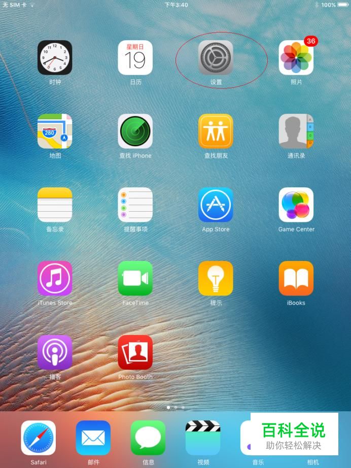 启动平板电脑系统,如图所示。唤出用户主界面,点击"设置"图标。