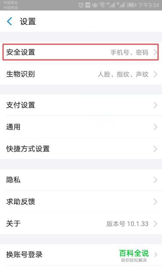 弹出的界面,我们点击安全设置,如图所示;