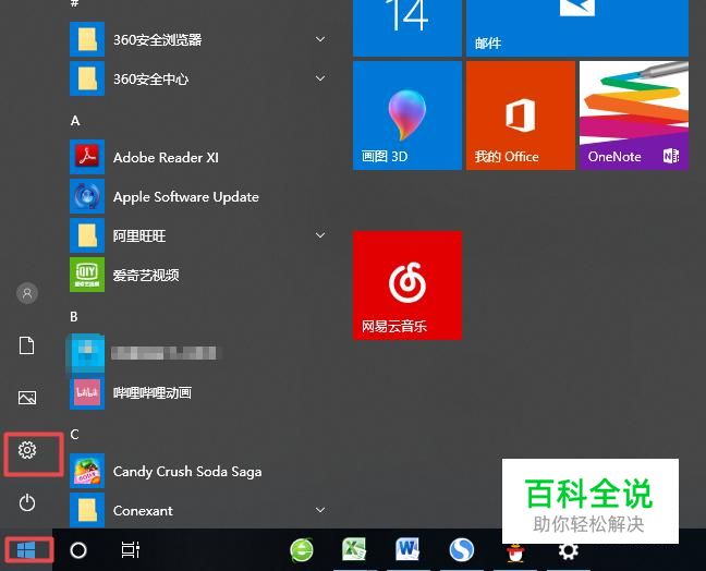 首先,我们点击电脑左下角的微软按钮,弹出的界面,我们点击设置;