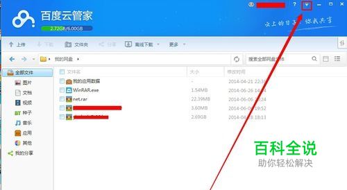 我们登陆好百度云管家之后,在打开的软件界面右上角,我们点击一个倒三角符号 如图