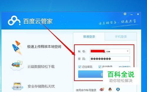 首先我们下载安装好百度云管家,然后打开软件,输入账号和密码,点击“登陆” 如图