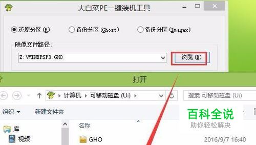 点击“浏览”,将u盘中的ghost xp系统镜像添加进来。如下图所示: