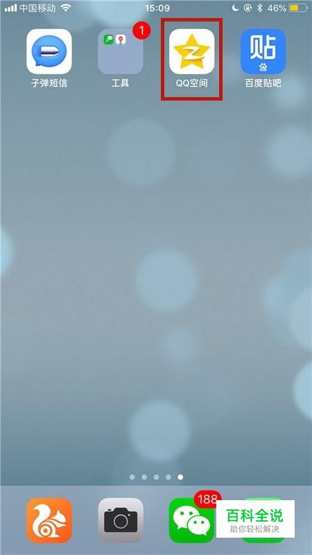 首先在我们的手机桌面上找到QQ空间并点击它,如下图所示。