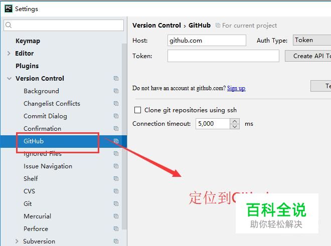 接下来会弹出Settings设置界面,我们选择Version Control选项下面的Github选项,如下图所示