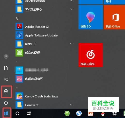 首先,我们点击左下角的微软按钮,然后点击设置;