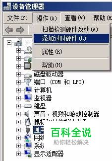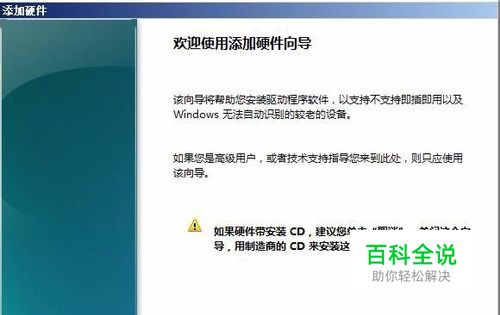 右击“我的电脑” ---属性---设备管理器----点击菜单“操作”----添加过时硬件,就会出现“添加硬件向导” 界面。
