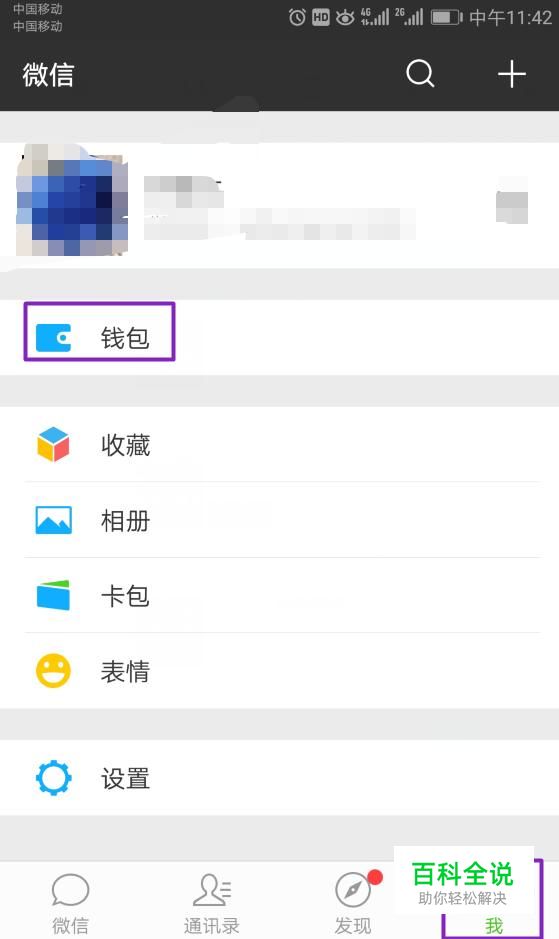 进入微信后,我们点击我,然后点击钱包;