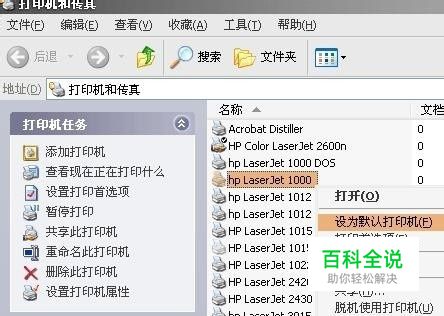 2. 在打印机窗口中将 HP LaserJet 1000 设为默认打印机。