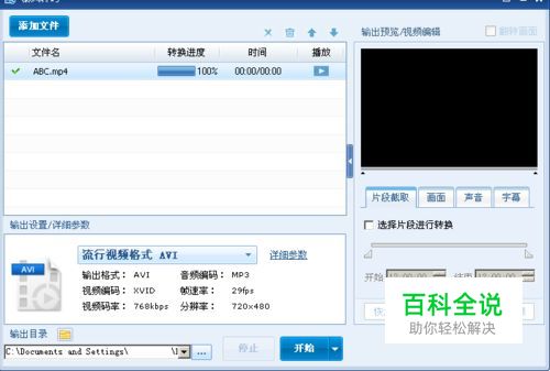 用暴风转码打开该视频文件,任意选一种视频格式进行转换,这是在转换的过程中字幕已经压进了视频里。