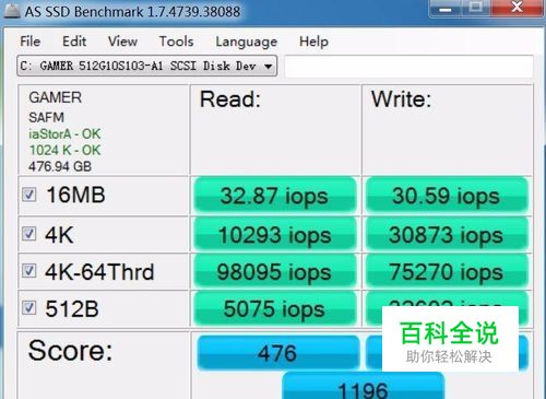 AS SSD Benchmark是一款专门的固态硬盘基准性能测试,它的测试内容很全面,包括了4个方面的测试(顺序读写、4K随机读写、64线程4K读写、寻道时间)。测试了两次,都很接近1200分,读写速度都在500MB/s以上,随机4K成绩也不错。