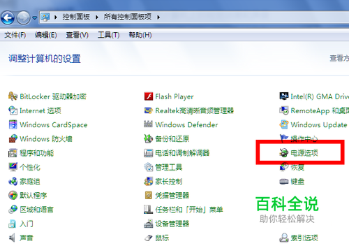 然后打开控制面板中的电源选项。