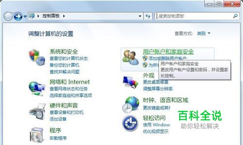 1)选择”开始“ 2)选择”控制面板“ 3)选择”用户账户和家庭安全“ 3)选择”用户账户“