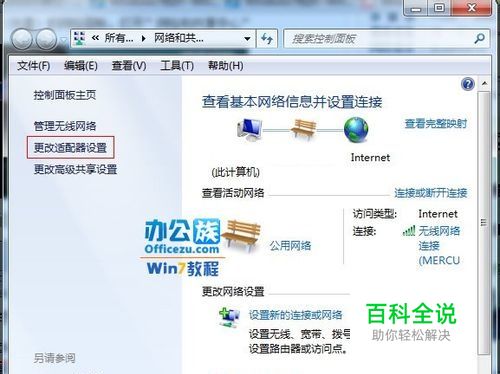 在打开的网络和共享中心窗体里面的左侧,点击“更改适配器设置”。