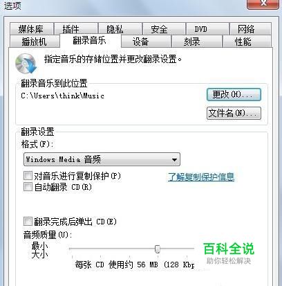 在选项-翻录音乐中可以设置相应路径以及其他设置