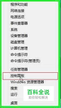 使用组合热键“Win+X”调出快捷菜单,点击并打开控制面板