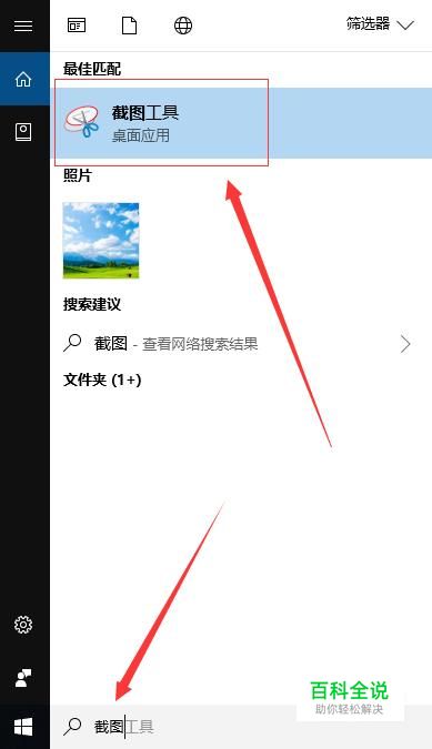 然后在搜索框内输入截图工具。小编只输入了截图,上面就匹配出了截图工具,我们直接点击打开。