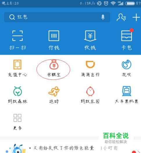 进入支付宝首页后,找到余额宝并点击进入