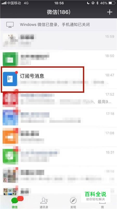 然后点击订阅号消息,如下图所示。
