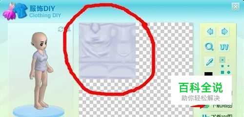 打开登陆第6大陆,购买纯白T血后,点击DIY,出现DIY版面。 选择下载贴图,贴图就是指红圈内的图片。
