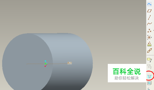 选择下图中圆柱端面,这是端面会自动变为红色; 按照“Ctrl”键,选择中间圆柱的轴。 一个平面和一个轴,孔的位置即可确定。