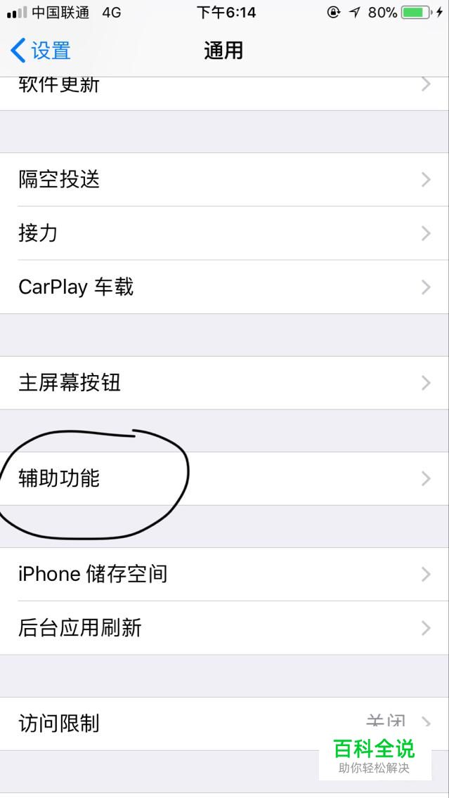 找到设置里的辅助功能,点击进入,如下图所示。