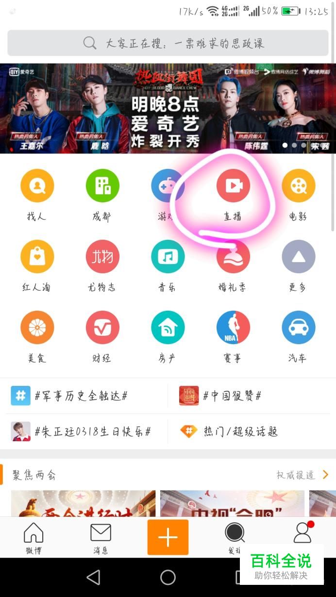 登录微博账号后,在发现页面中,如图1点击进去。然后就进入到微博直播的页面。