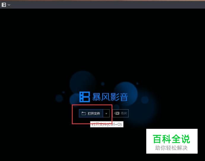这里以暴风影音软件为例,打开暴风影音播放器主页面,点击“打开”按钮,打开视频文件。