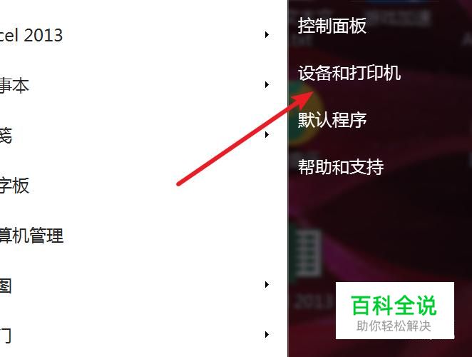 在开始菜单上点击‘设备和打印机’