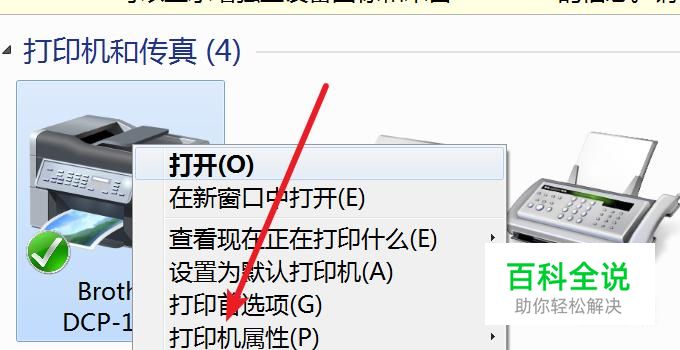 打开后,右键点击有问题的打印机,然后点击‘打印机属性’