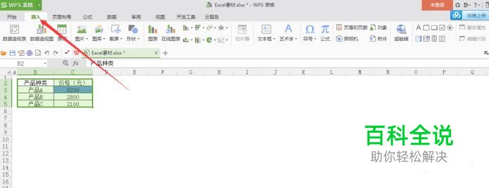 在WPS的上方工具栏中选择“插入”,如下图所示