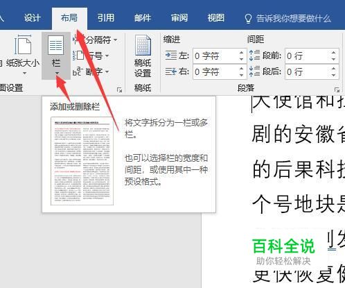 选择两栏。如果是想整个页面分为左右两部分的话,直接点击两栏即可将文字分成两栏,如果想分为更多栏的话,直接选择即可。
