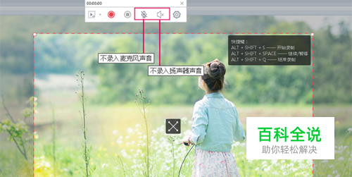 拖拽红色设置一片区域作为录制区域,点击麦克风和扬声器图标设置消音