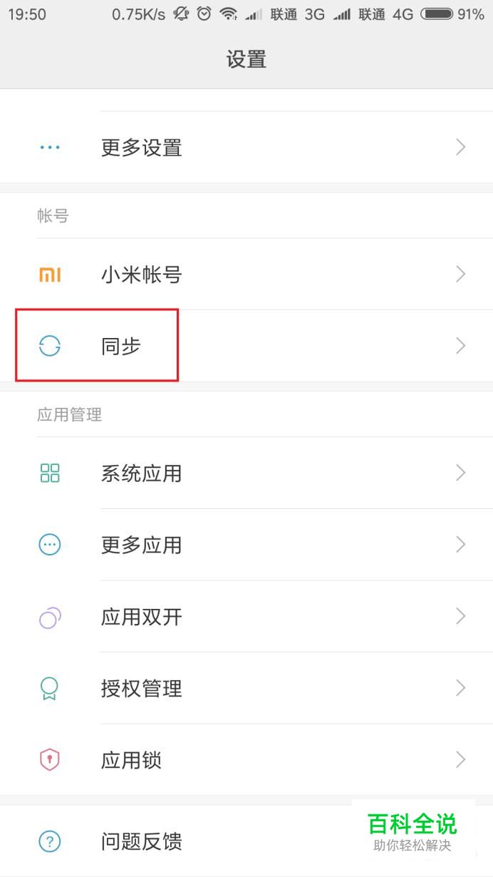 打开MIUI系统设置页面,在设置页面中,点击“同步”菜单选项。