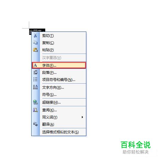 首先在第一行填写“合同书”三个字,并且选中,右键点击【字体】。