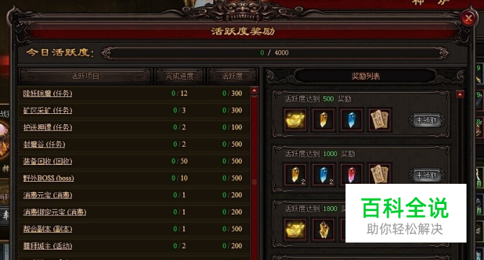 为了让玩家可以更好的进行游戏体验,雷霆之怒系统有一个引导奖励即活跃度奖励。今天就来告诉大家雷霆之怒怎么完成活跃度! 在游戏中有着大大小小的各种活动,玩家可以根据个人喜好选择是否参与,但是如何参与一些特定的活动或是有一些特定的游戏操作是可以获得活跃度,活跃度达一定值是可以领取到相关的奖励的,点击游戏界面右上方“活跃奖励”里即可查看到活跃度目前分4种奖励。分别是活跃度达到500、1000、1800、3000四个分值奖励。 奖励的物品也是非常丰厚的,由其是书页、绑定元宝、各种宝石结晶等等。奖励很诱人也是吸引大家参与活动的一个方式,恶魔神殿、龙潭争霸,夺宝战场本身也是非常好玩的。边玩边获得活跃度也非常爽的。 再者一些日常任务如降妖除魔等也可以获得活跃度,所有任务活动等等所获得的积分加起来最高可达4000积分,而最多3000积分就有领取完所有活跃度奖励,所以如果错过了一些活动也不用提心,记得玩其他的活动就行了,PS:部分活跃度是需要完成一活动或任务定次数才能获得的呢!