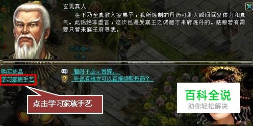 与玄机真人对话,选择“学习家族手艺”。