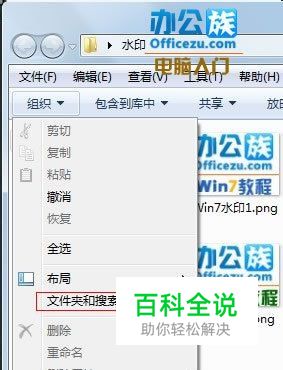 双击打开文件夹,点击菜单栏--组织--文件夹和搜索选项。