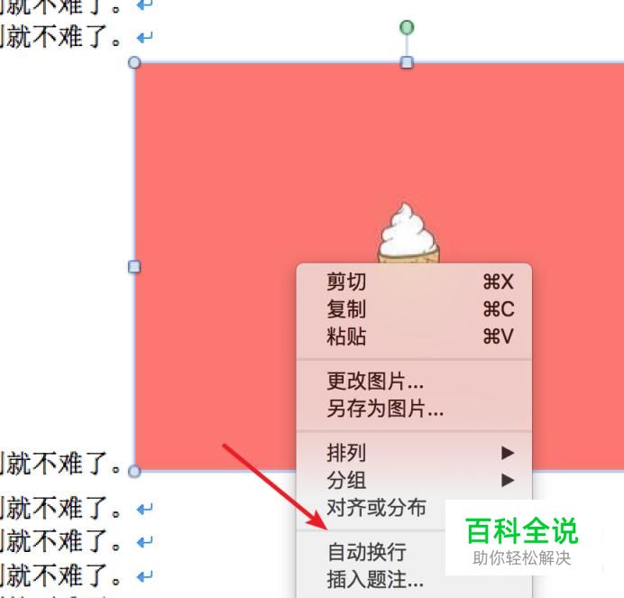 在文档里插入一张图片,右键点击这张图片,点击右键菜单上的‘自动换行’