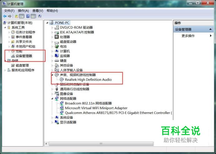 在设备管理器界面中,找到音频设备硬件,查看驱动程序是否安装完毕,安装完毕之后如果可以正常使用,则证明驱动程序是没有问题的。