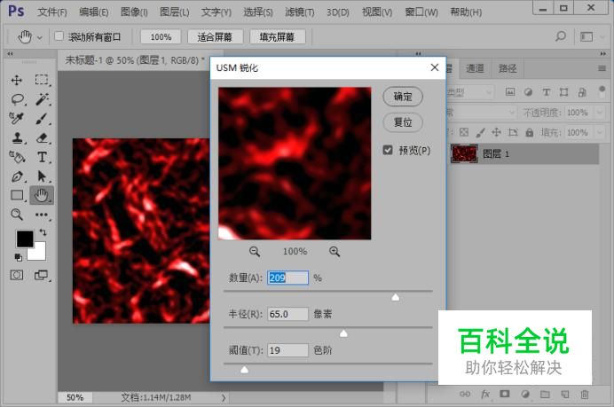 添加动感模糊滤镜效果,参数如图所示;添加USM 锐化滤镜效果参数,如图所示。