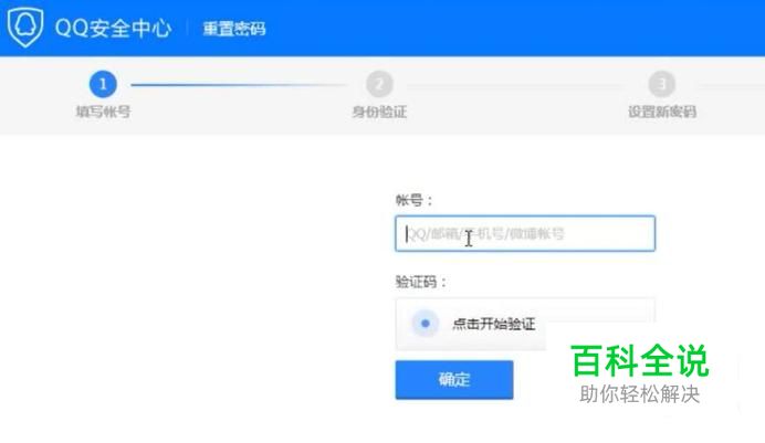 然后会进入到“QQ安全中心”的页面,输入QQ号码和验证码,点击确定。