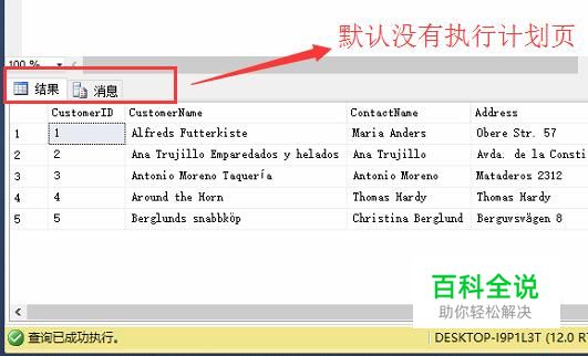 首先我们来执行一个SQL语句,在输出结果栏中可以看到并没有执行计划页