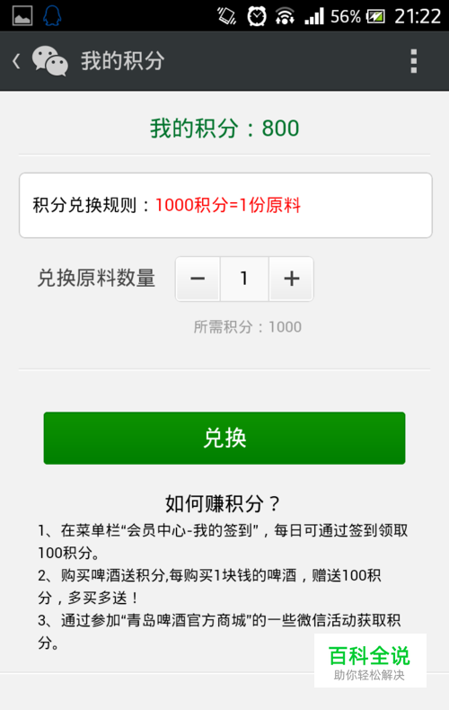 进入微信公众号对话界面,点击下方自定义菜单 会员中心=>我的积分,进入积分兑换原料的界面,将已经获取的积分兑换成酿酒的原料。