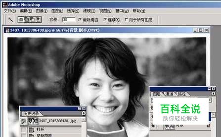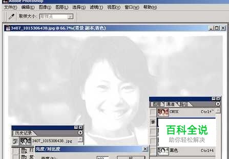 将图片由灰度模式转成CMYK模式。复制一个新层,以后在新层中操作。