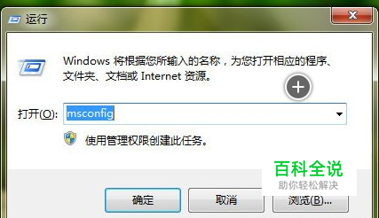 首先按【Win+R】组合键,打开运行窗口,输入【msconfig】
