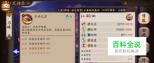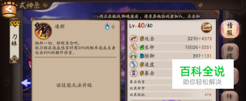 二技能:有20%的几率提升40%的额外输出,六段伤害都有几率提升伤害,但是类似针女这类的输出不会享受该技能的加成;