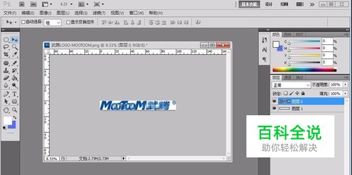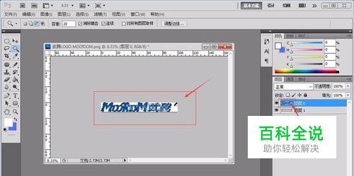 在Adobe Photoshop CS5 右侧 “图层”窗口,选择LOGO图层,按住键盘“Ctrl ”键,点击图层处,此时即可对想要的图层进行选择,如下图,图像边沿出现虚线与选择上。