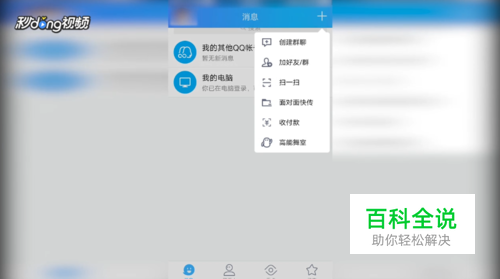 在手机上登录“QQ”,进入消息页面,点击右上角的“+”图标。